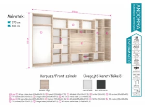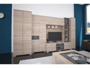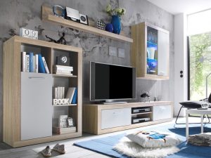 - Klasszikus nappali szekrénysor 370, 410 cm-es változatban kapható, bútorlapos fronttal, keretléc nélküli változatban. Sonoma tölgy színben érhető el, rusztik fehér vagy matt sötétszürke üvegajtó kerettel, illetve fiókelővel. A legtöbb otthonba könnyedén beilleszkedik. Nappali szekrénysor szerepe mellett méretének köszönhetően nem okoz gondot a ruhái tárolása sem.