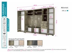 Karakteres, 345 cm-es méretben kapható Havanna szekrénysorunk 3-as színkombinációja különleges megjelenést kölcsönöz nappalijának.