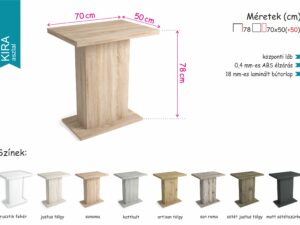 Laminált bútorlapból készült Kira asztalunk 70 cm-es méretben, bővíthető vendéglappal kapható. 8 színben vásárolható meg.