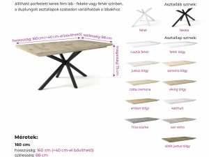Az asztallap 11 féle színben, a láb fekete vagy fehér színben érhető el.